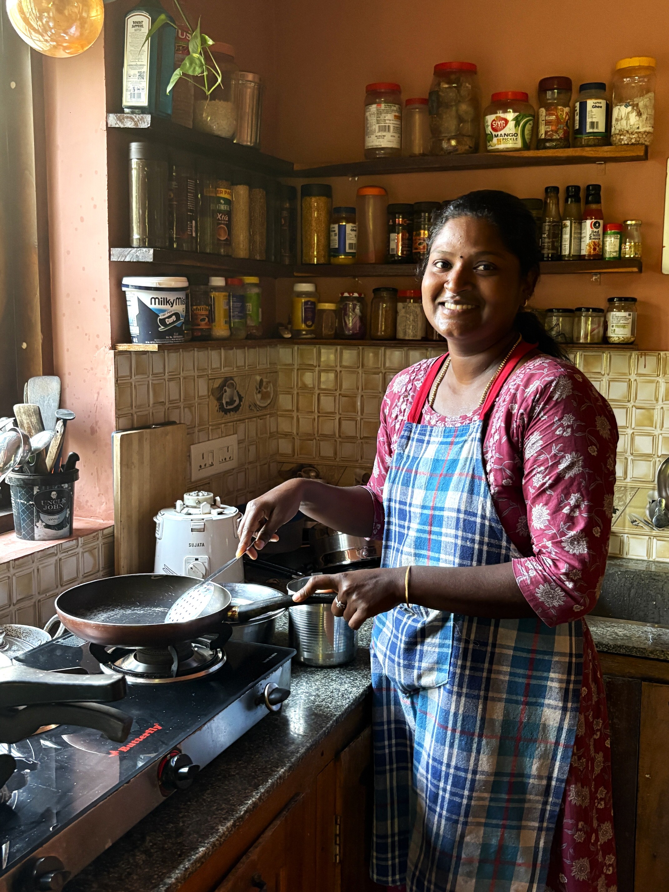 Our skilled, women-led team from the local community features a committed manager named Jesmi, chef Archana, housekeeper Jismol, and caretaker Aromal. When you arrive, Jesmi will greet you personally for a thorough discussion and will handle the organization of local activities, transportation, bookings, and any other needs you might have.
